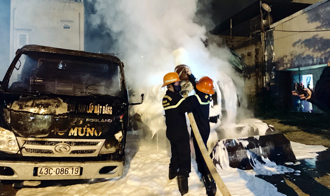 Lúc 23 giờ 20 ngày 18-7, người dân phát hiện khói nghi ngút bốc ra từ bãi đất trống tại số 254- Bùi Tấn Diên (quận Liên Chiểu, Đà Nẵng). Đến kiểm tra thì phát hiện nhiều ô-tô đang chìm trong biển lửa nên báo lực lượng chức năng. Nhận tin, Đội Cảnh sát PCCC – Công an quận Liên Chiểu đã xuất 2 xe chữa cháy và hàng chục CBCS tham gia chữa cháy. Phòng Cảnh sát PCCC&CNCH cũng chi viện thêm 2 xe chữa cháy hỗ trợ dập lửa. Sau 1 giờ đồng hồ, lửa được dập tắt hoàn toàn. Hậu quả, 1 xe múc và 1 xe ô-tô tải bị lửa thiêu cháy, thiệt hại nặng.