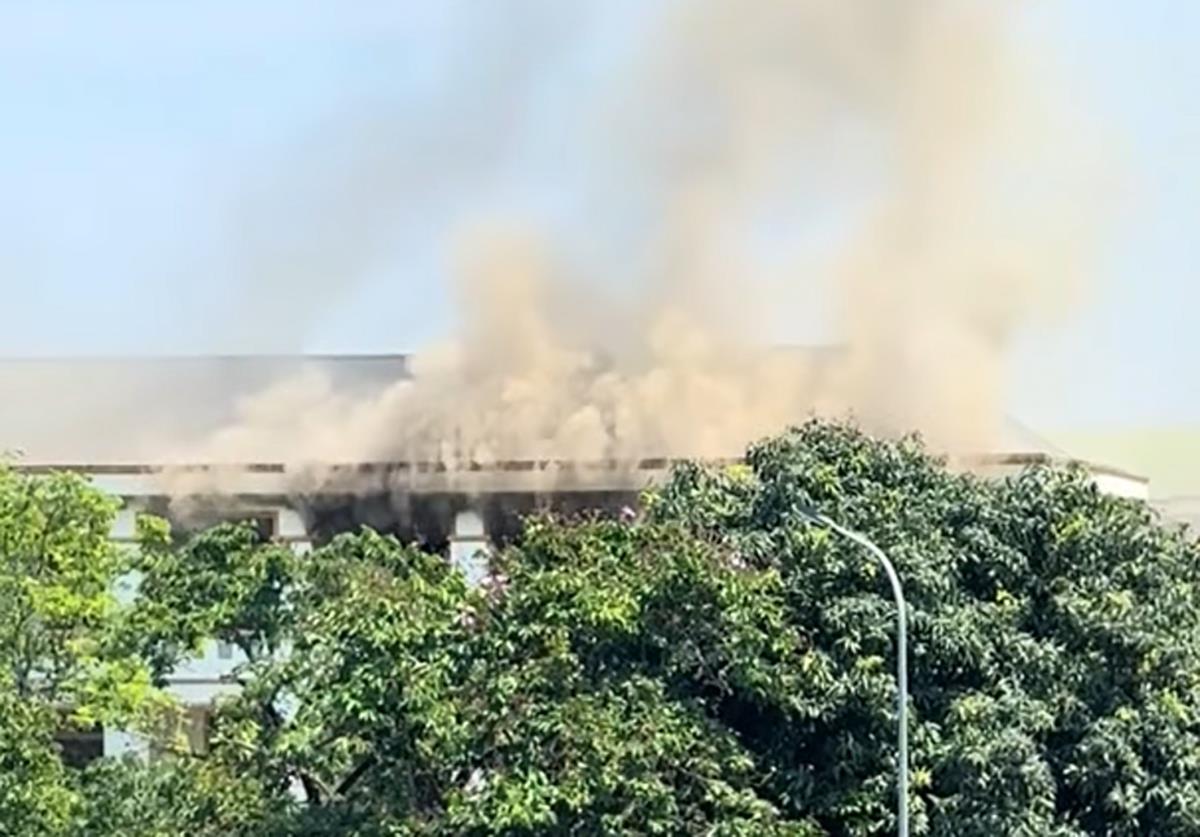 Khoảng 10 giờ 30 ngày 7-5, một số học sinh và thầy cô giáo Trường THPT chuyên Phan Bội Châu (TP Vinh, Nghệ An) đang dạy học thì phát hiện khói lửa bốc ra từ phòng thực hành thí nghiệm của trường.