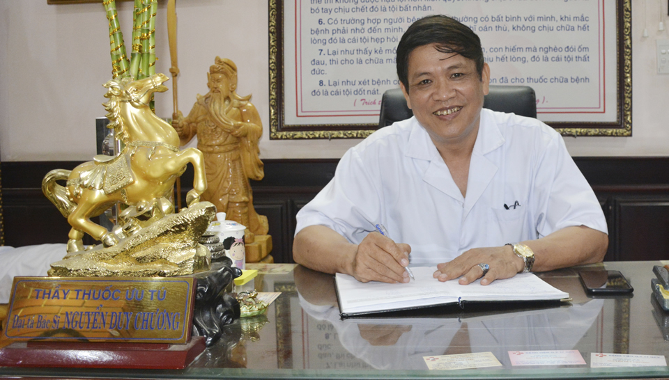 Để hỗ trợ chuyên môn, bác sĩ Chương kiên trì học chữ Hán Nôm tại Trung tâm Hán Nôm Đà Nẵng. Từ đó, người thầy thuốc ưu tú này đã tra cứu được nhiều tư liệu đông y cổ bằng chữ Hán và tích cực vận dụng vào thực tế, nâng cao chất lượng khám, chữa bệnh. Với niềm vui vừa tốt nghiệp khóa học Hán Nôm dài hạn, bác sĩ Chương hồ hởi trải lòng: Trong ngành Đông y có rất nhiều chữ Hán, nếu không biết chữ Hán Nôm thì rất khó nghiên cứu và vận dụng kiến thức của tiền nhân. Trong số bệnh nhân mình đã điều trị khỏi bệnh thoát vị đĩa đệm có nhiều người là đồng đội, bạn bè, có cả thầy giáo đã dạy chữ Hán Nôm cho mình và mình coi đó là một niềm hạnh phúc to lớn của người thầy thuốc.