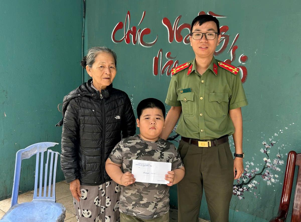 Đại úy Lê Kim Thành Công cùng Chi đoàn Phòng An ninh điều tra hỗ trợ một em nhỏ có hoàn cảnh khó khăn, mồ côi cha mẹ tại phường Sơn Trà, TP Đà Nẵng.