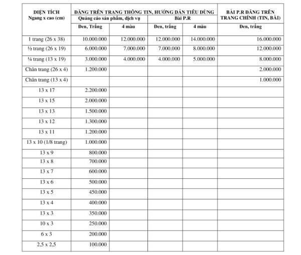 BẢNG GIÁ TUYÊN TRUYỀN, QUẢNG CÁO