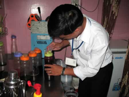 Ông Trương Quốc Khanh, Phó Giám đốc Chi cục ATVSTP Đà Nẵng cho biết, hiện ở Việt Nam chưa có nơi nào có thể xét nghiệm được polimer trong TSTC. Đợt kiểm tra lần này, Chi cục ATVSTP TP lấy mẫu xét nghiệm các nguyên liệu chính chế biến TSTC: xirô - xét nghiệm đường hóa học, phẩm màu độc hại, sữa có đúng hàm lượng đã công bố hay chưa, chất tẩy trắng (đối với các hạt trân châu màu trắng)...