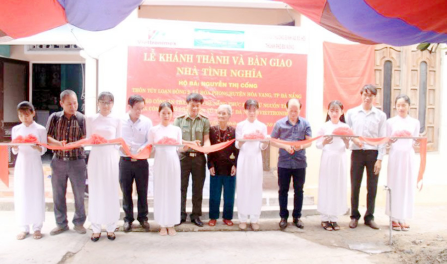 Sáng 30-3, Báo CATP Đà Nẵng phối hợp với Công ty Cổ phần Điện tử Tin học Đà Nẵng (Viettronimex), Sở LĐTB&XH TP và UBND xã Hòa Phong (H.Hòa Vang) tổ chức khánh thành, bàn giao nhà tình nghĩa cho gia đình bà Nguyễn Thị Cống (trú thôn Túy Loan Đông 2, xã Hòa Phong, H.Hòa Vang). Bà Cống là thân nhân gia đình có công cách mạng, tuổi cao, sức yếu, sống một mình trong căn nhà xuống cấp. Báo CATP Đà Nẵng đã vận động Viettronimex tài trợ 50 triệu đồng và UBND TP hỗ trợ 10 triệu đồng để xây dựng nhà cho bà Cống.
