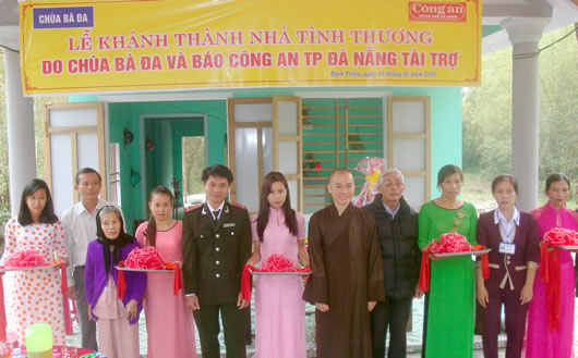 (Cadn.com.vn) - QUẢNG NAM- Ngày 10-2, Báo CATP Đà Nẵng, Chùa Bà Đa cùng với chính quyền địa phương tổ chức lễ khánh thành và bàn giao nhà tình thương cho bà Nguyễn Thị Thuẫn (1945), trú thôn Vân Tây, xã Bình Triều (H. Thăng Bình) là đối tượng hưởng chính sách xã hội tại địa phương. Đến dự lễ có Đại úy Nguyễn Quang Sang, Phó Tổng biên tập Báo CATP Đà Nẵng, Đại đức Thích Thông Đạo, Ủy viên Hội đồng trị sự Giáo hội Phật giáo Việt Nam, Phó Trưởng ban trị sự kiêm Chánh thư ký Giáo hội Phật giáoViệt Nam TP Đà Nẵng, Trú trì chùa Bà Đa cùng đại diện chính quyền địa phương và gia đình bà Nguyễn Thị Thuẫn. Ngôi nhà vừa xây dựng có diện tích hơn 60 m2, với tổng kinh phí là 80 triệu đồng, trong đó Báo CATP Đà Nẵng và Chùa Bà Đa tài trợ 60 triệu đồng.