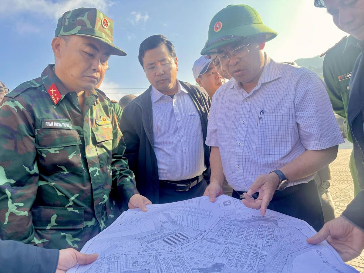 Phó Chủ tịch UBND TP Đà Nẵng Trần Anh Tuấn kiểm tra tiến độ triển khai xây dựng Trường Phổ thông nội trú liên cấp xã Hùng Sơn. Ảnh: A Lăng Hương