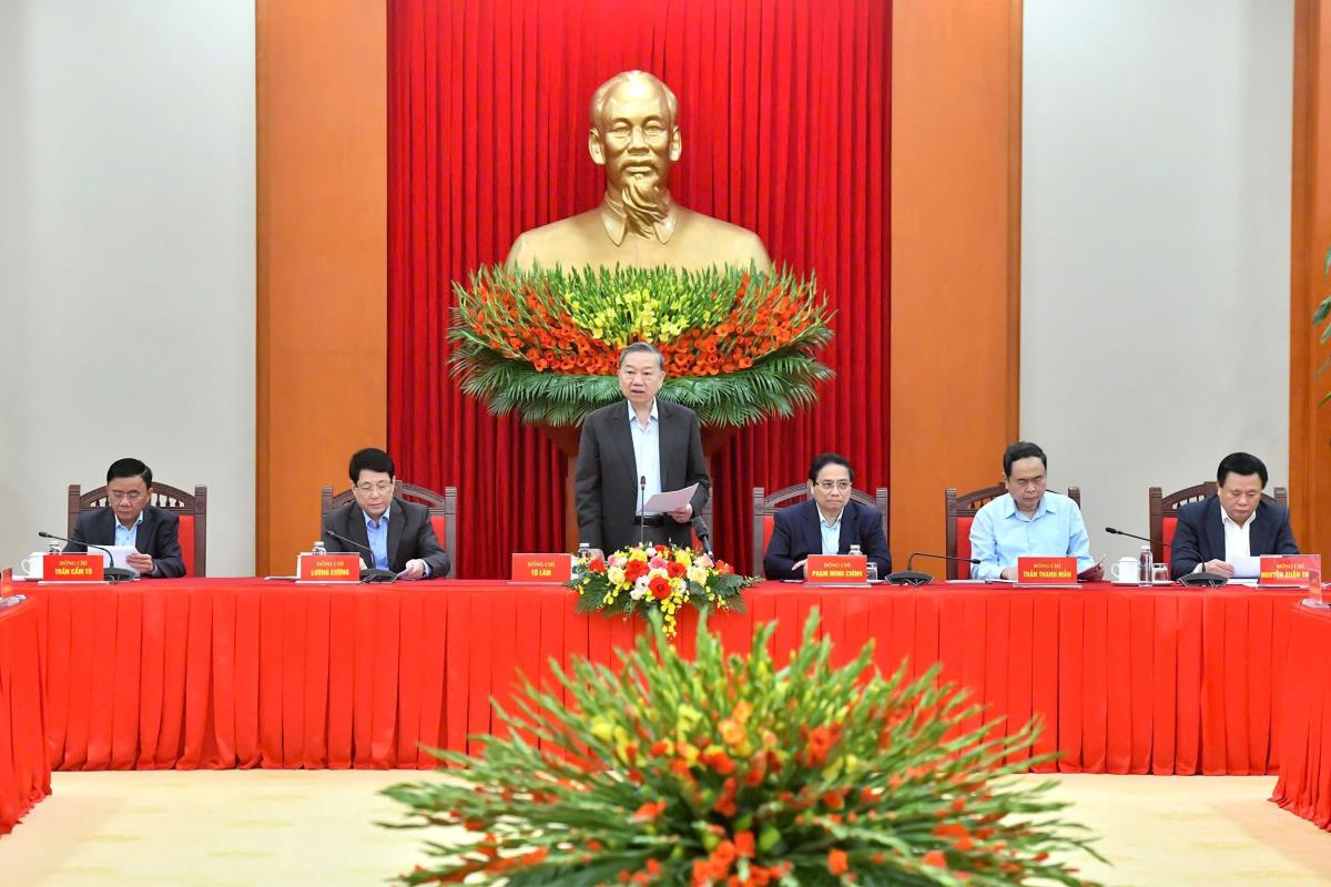 Tổng Bí thư Tô Lâm phát biểu tại cuộc họp Tiểu ban Văn kiện Đại hội XIV của Đảng, ngày 15/3/2025. (Ảnh: ĐĂNG KHOA)