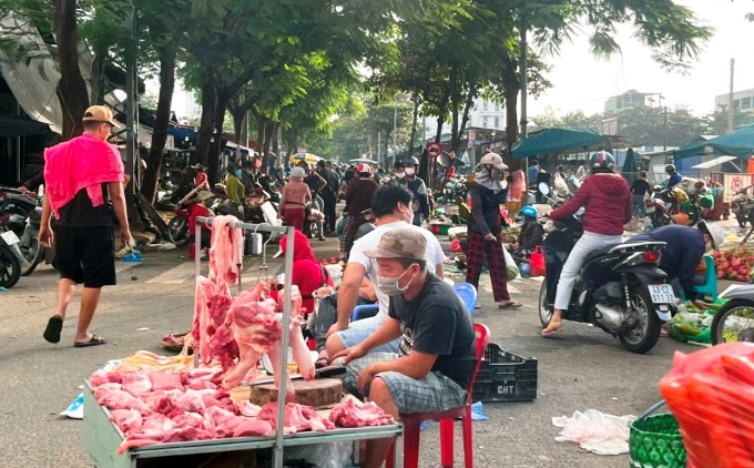 - Đúng, đoạn đường Phan Thanh Nghị (trước cổng chợ đầu mối Hòa Cường). Suốt mấy tháng qua, sáng nào hàng trăm tiểu thương cũng tràn ra, chiếm hết lòng đường cả vài trăm mét buôn bán sỉ, lẻ đủ thứ mặt hàng, từ rau, củ, quả, hoa, đến thịt cá… Rồi xe vận chuyển hàng đậu đỗ kéo dài kèm theo người mua dựng xe giữa đường gây mất ATGT, mỹ quan đô thị. Chưa hết đâu, những tuyến đường khác như Hồ Nguyên Trừng, Lê Nổ và Lê Sát, tiểu thương cũng chiếm hết lòng đường giao dịch mua bán hàng hóa, tạo ra một vòng vây “chợ cóc” quanh chợ đầu mối Hòa Cường.