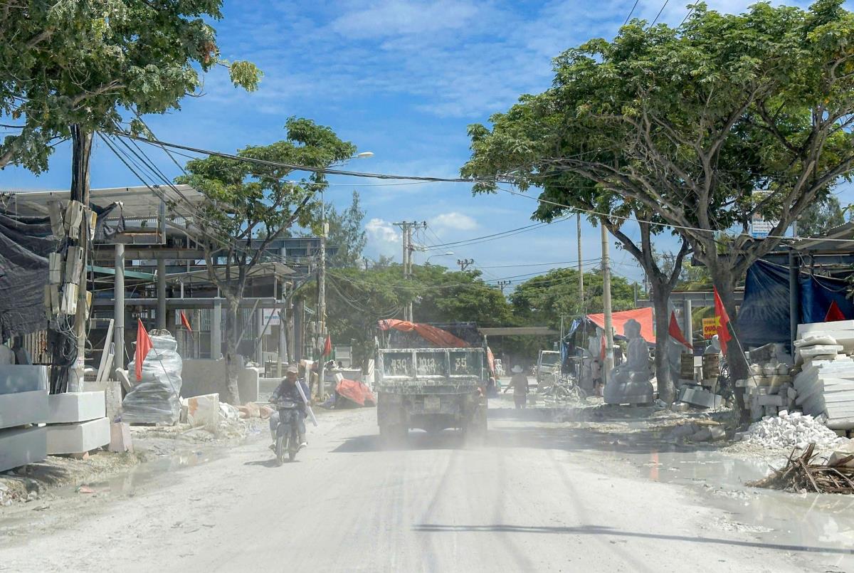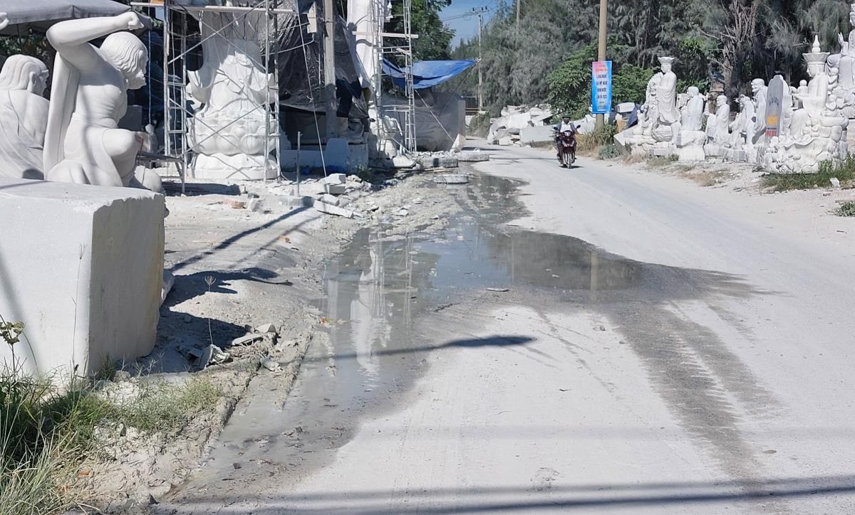 Mới 8 giờ sáng một ngày tháng 8-2025, dạo quanh làng đá một vòng, cảm nhận đầu tiên của chúng tôi là bầu không khí đặc quánh bởi bụi đá trắng bay mù mịt, nước thải từ việc cưa xẻ, đánh bóng hoàn hiện sản phẩm đá xả khắp nơi, lênh láng trên mọi con đường trong khu vực, trộn với bụi đá tạo thành thứ bùn đặc quánh vương vãi khắp nơi… Những người thợ ở đây cho biết, trước đây, làng nghề vốn nằm rải rác trong các khu dân cư, tập trung chủ yếu ở chân núi Ngũ Hành Sơn. Hoạt động sản xuất gây ô nhiễm, ảnh hưởng đến các hộ dân ở địa phương. Từ năm 2011, thành phố quy hoạch một khu chung để bố trí các hộ sản xuất vào tập trung ở phường Hòa Hải. Tuy nhiên, khi đi vào hoạt động, khu sản xuất của làng nghề đã nảy sinh nhiều bất cập.