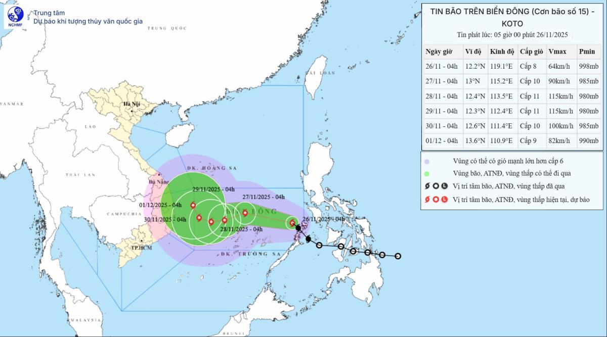 Theo Trung tâm Dự báo khí tượng thủy văn quốc gia, Biển Đông chính thức đón cơn bão số 15 trong năm nay, có tên quốc tế là Koto (do Nhật Bản đặt, nghĩa là "đàn hạc").
