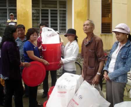 Hòa cùng mạch tình ấm áp đó, nhiều đơn vị, doanh nghiệp, nhà hảo tâm khắp cả nước đã cùng với Báo Công an TP Đà Nẵng trực tiếp đưa quà, tiền đến ủng hộ tận tay đồng bào gặp nạn. Đơn vị đầu tiên là Cty CP VIC Việt Nam đã phối hợp cùng Báo đưa 700 suất quà trị giá 200 triệu đồng đến trao tặng đồng bào bị thiệt hại tại H. Hòa Vang (Đà Nẵng), Đại Lộc (Quảng Nam), Bình Sơn (Quảng Ngãi) ngay sau cơn bão, lũ đi qua. Kế đến là Bệnh viện Quốc tế Vũ Anh (TPHCM) cùng Báo đưa 1.200 suất quà trị giá 500 triệu đồng cùng 65 triệu đồng tiền mặt đến cứu trợ đồng bào bị thiệt hại nặng nề do thiên tai gây ra tại huyện miền núi Trà Bồng (Quảng Ngãi), 2 xã miền núi Tam Sơn, Tam Thạnh (Núi Thành, Quảng Nam), trong đó ủng hộ mở một sổ tiết kiệm 50 triệu đồng giúp đỡ 4 cháu mồ côi do cha mẹ chết trong bão số 9 tại xã Tam Anh Bắc của Núi Thành. Tiếp đó, hàng chục đoàn cứu trợ như Hội từ thiện các doanh nhân Đài Loan tại TPHCM, Tổng Cty Sông Hồng (Bộ Xây dựng), Cty Cổ phần Việt Am... đã cùng chúng tôi đưa hàng ngàn suất quà đến sẻ chia với đồng bào vùng bão lũ.
