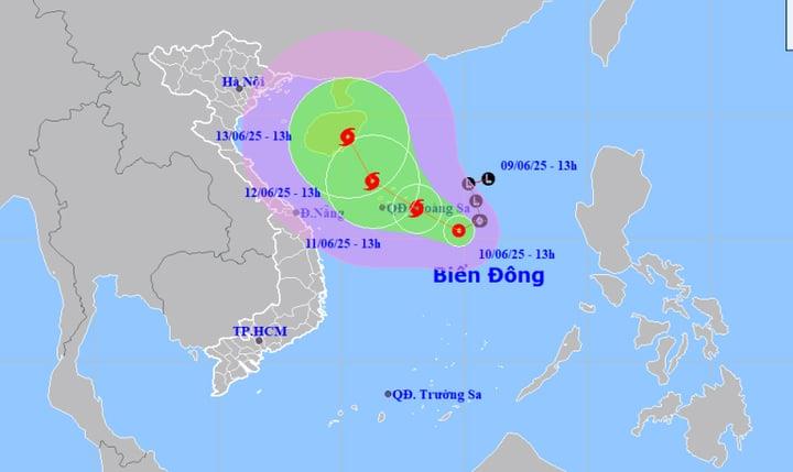 Theo Trung tâm Dự báo khí tượng thủy văn quốc gia, rạng sáng nay (13-6), cường độ bão số 1 đã mạnh thêm 1 cấp, từ cấp 9 lên cấp 10, giật cấp 13.