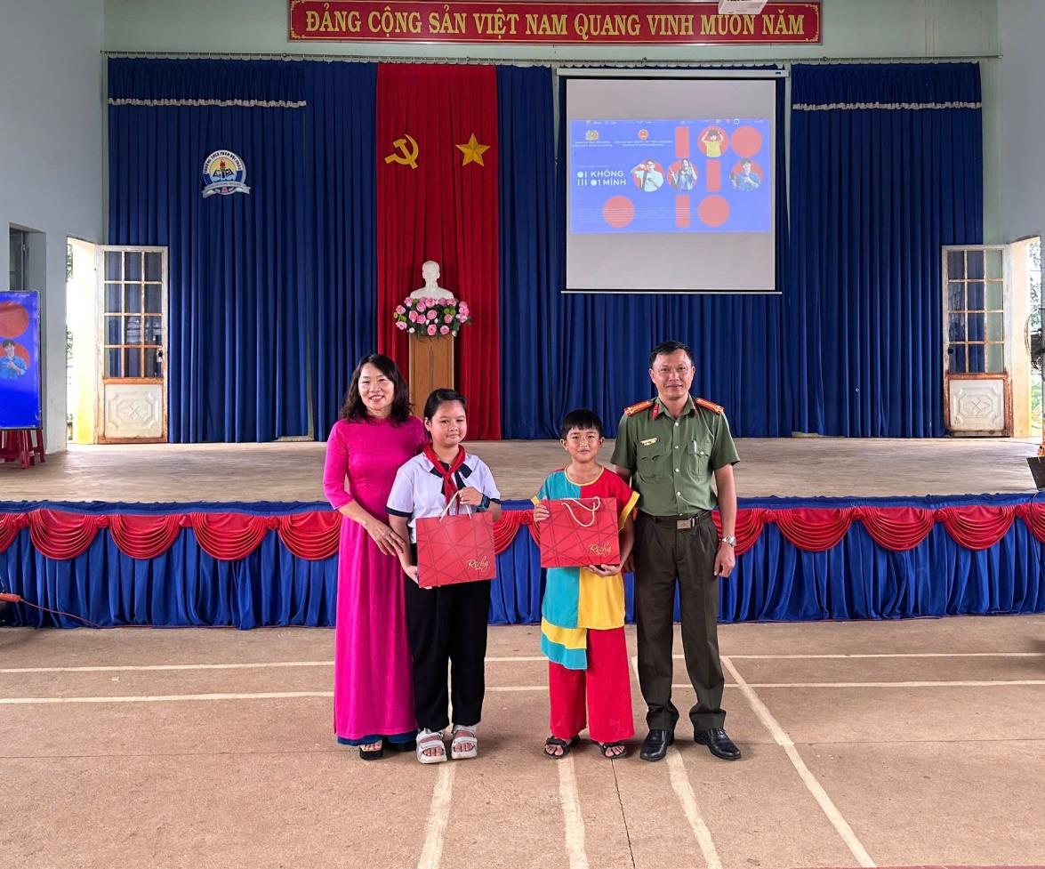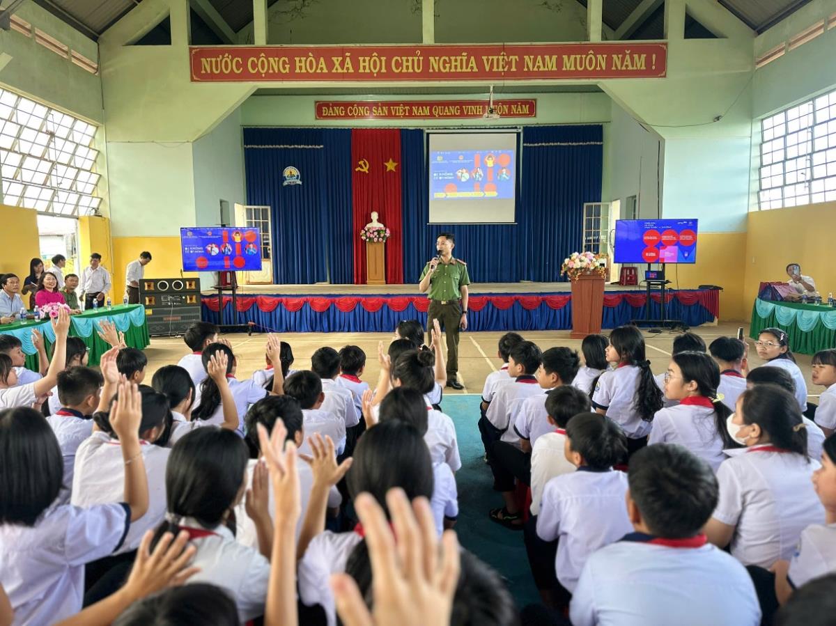 Thông qua hình thức trực tiếp đóng vai vào tiểu phẩm “Cú lừa ảo - Giải cứu thật”, hỏi - đáp, trao đổi tình huống thực tế và video minh họa, học sinh được hướng dẫn nhận biết các thủ đoạn lừa đảo, thao túng, giả mạo cán bộ Công an, Điện lực, người thân… để lừa đảo qua mạng; kỹ năng xử lý khi bị người lạ dụ dỗ, gửi link lạ, yêu cầu cung cấp thông tin cá nhân và cách báo tin kịp thời cho cha mẹ, thầy cô hoặc cơ quan Công an khi phát hiện dấu hiệu nghi vấn; thông báo cho các em học sinh biết về kênh tiếp nhận thông tin, hỗ trợ các vấn đề liên quan đến trẻ em trực tuyến 24/7 (Tổng đài Quốc gia Bảo vệ trẻ em 111).