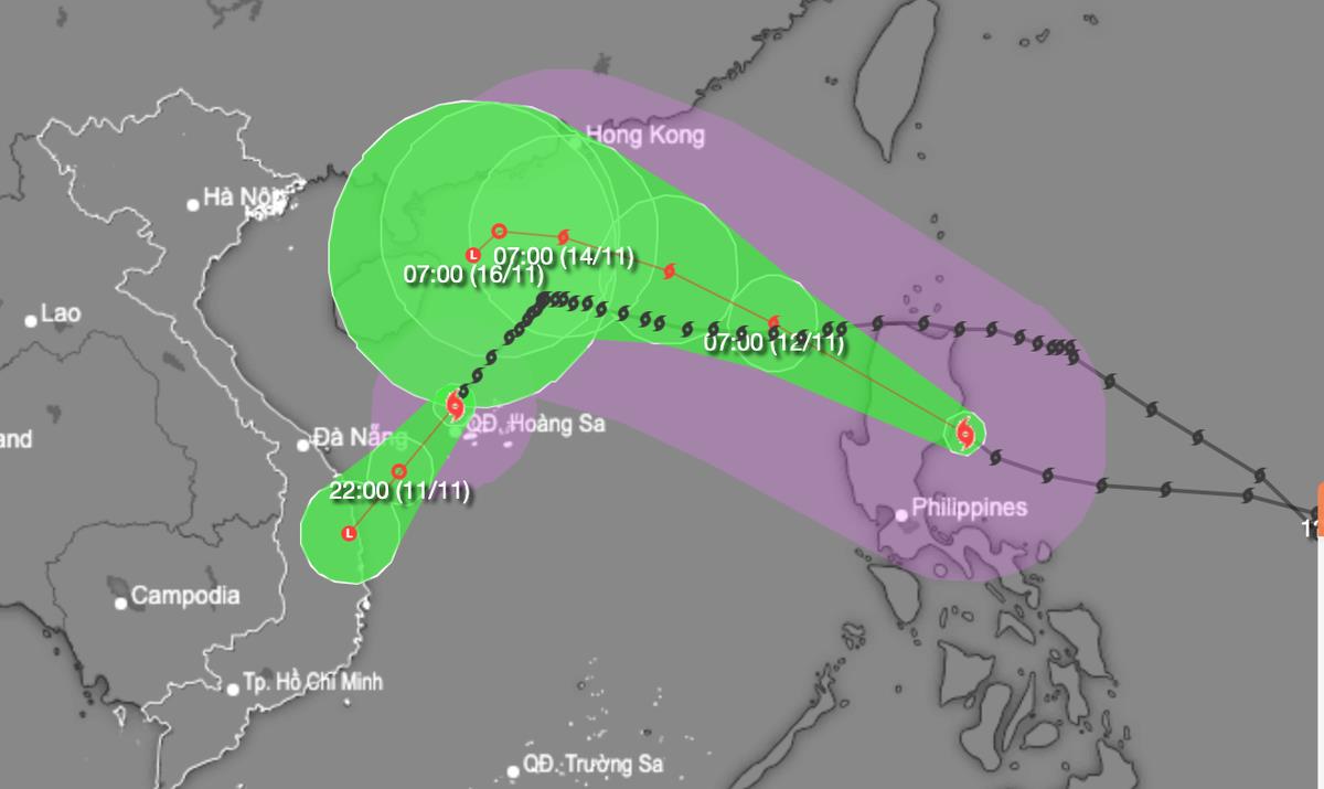 Đến 7 giờ ngày 12-11, vị trí tâm bão ở vào khoảng 18,6 độ Vĩ Bắc - 118,3 độ Kinh Đông, trên vùng biển phía Đông khu vực Bắc Biển Đông. Sức gió mạnh nhất vùng gần tâm bão mạnh cấp 10, giật cấp 12. Bão di chuyển theo hướng Tây Tây Bắc, tốc độ khoảng 20 km/h, đi vào Biển Đông. Vùng nguy hiểm ở vào khoảng vĩ tuyến 15,0 - 20,0 độ Vĩ Bắc; phía Đông kinh tuyến 116,5 độ Kinh Đông. Vùng biển phía Đông khu vực Bắc Biển Đông độ rủi ro thiên tai cấp 3.