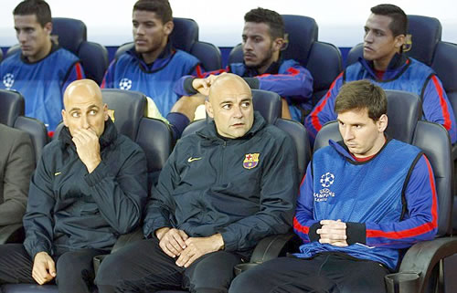 Messi thất vọng trên băng ghế kỹ thuật. |