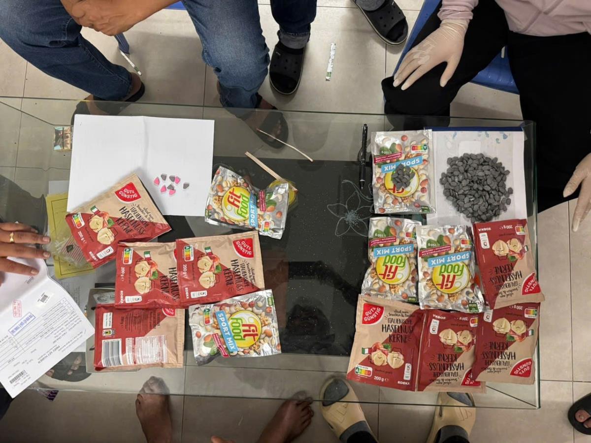 Tiến hành kiểm tra lô hàng, Cơ quan Công an phát hiện, thu giữ 5000 viên thuốc lắc được ngụy trang dưới dạng thực phẩm chức năng (thức ăn kiêng) được để trong thùng hàng. Khám xét nơi ở của Phú tại kiệt đường Lý Tự Trọng, Công an thu giữ thêm 1 gói ma túy đá.