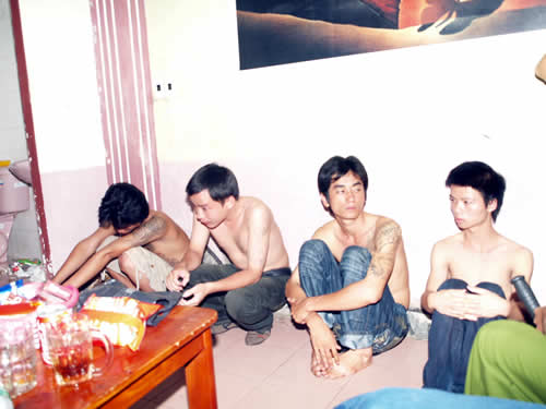 Các đối tượng tham gia sử dụng thuốc lắc tại karaoke Tiến Thịnh. |