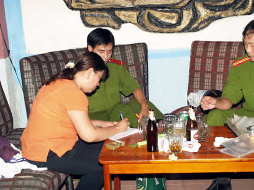 Tối 2-9, các TS Đội CSĐTTPVMT CAQ Hải Châu phối hợp cùng CAP Bình Hiên bám sát các đối tượng khả nghi. Theo báo cáo của TS, từ 18 giờ, vợ chồng Thảo - Vân và 2 đối tượng khác đã đến thuê phòng 202 tại karaoke Tiến Thịnh trên đường Huỳnh Thúc Kháng. Trong vòng gần 2 tiếng đồng hồ sau, lần lượt có thêm 4 đối tượng khác đến chung vui. Lúc này là khoảng 20 giờ, xác định cuộc vui đã vào đỉnh điểm nên các TS quyết định tấn công để vén bức màn bí mật ẩn trong căn phòng 202. Quả nhiên, khi các TS ập lên tầng 2 đã phát hiện trước cửa phòng 202 một thanh niên người nhỏ quắt đang làm nhiệm vụ cảnh giới, phía trong đèn màu nháy loạn xạ, nhạc dập inh tai...