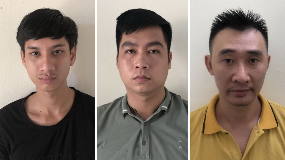 Từ trái qua, các đối tượng: Nguyễn Ngọc Hải, Nguyễn Minh Phụng và Hoàng Minh Linh. |