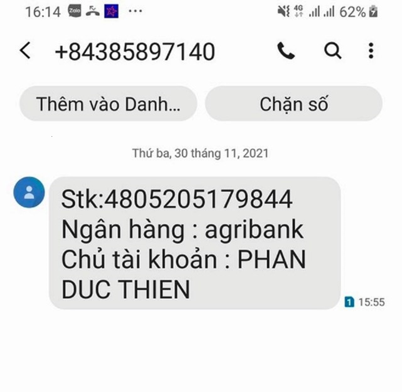 “Người đàn ông gọi giới thiệu là mình tên là V.T.G. - Phó trưởng Phòng CSGT Công an tỉnh Quảng Ngãi và trực tiếp chỉ huy đợt ra quân xử lý, chấn chỉnh hoạt động vận tải tại Khu kinh tế Dung Quất vừa qua. Qua tìm hiểu, tôi biết ông G. đang giữ chức vụ đó là đúng và người này đọc đúng thông tin 3 xe tải của doanh nghiệp. Tuy nhiên, sau khi nhận số tài khoản mang tên khác là Phan Duc Thien, tôi bình tĩnh suy nghĩ thì nhận thấy khả năng đối tượng này là kẻ lừa đảo, bởi một Phó trưởng Phòng CSGT Công an tỉnh không thể làm việc “ngoài luồng” như vậy. Do đó, tôi quyết định không chuyển tiền và đến cơn quan Công an tỉnh trình báo vụ việc”, bà H. thông tin.