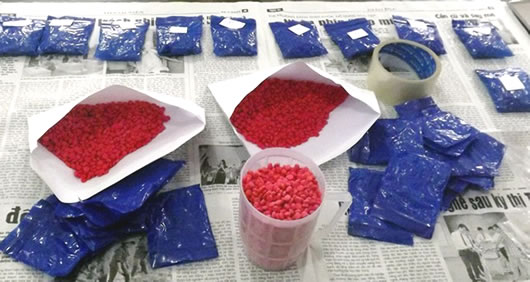 Tại đây, tổ công tác đã phát hiện một túi ni-lông màu đen được giấu dưới ghế ngồi phía trước. Qua kiểm tra ban đầu, các TS phát hiện trong túi ni-lông màu đen chứa 4 bọc nhỏ đựng ma túy tổng hợp. Ngay sau đó, đối tượng được dẫn giải về trụ sở CAH Thanh Chương. Tại đây, đối tượng khai nhận là Phạm Văn Đức (1997, trú xã Thanh Lâm, H. Thanh Chương). Kiểm tra số tang vật thu được, BCA phát hiện và thu giữ 9.000 viên ma túy tổng hợp được bọc trong 4 bọc nhỏ và 1 túi đựng 46,7g ma túy đá. Qua đấu tranh khai thác, Đức khai vừa mua số ma túy này từ Cửa khẩu Cầu Treo mang về H. Thanh Chương bán cho các đối tượng có nhu cầu sử dụng trên địa bàn. Hiện Chuyên án đang được CAH Thanh Chương điều tra mở rộng, đồng thời hoàn tất hồ sơ để khởi tố đối tượng theo quy định của pháp luật.