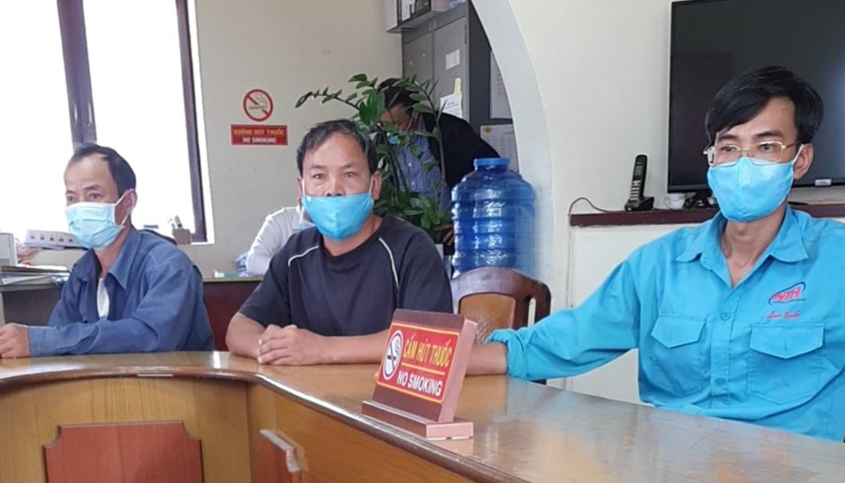 Ông Hoàng và ông Quý tại cơ quan công an (thứ nhất và thứ hai, từ phải qua). |