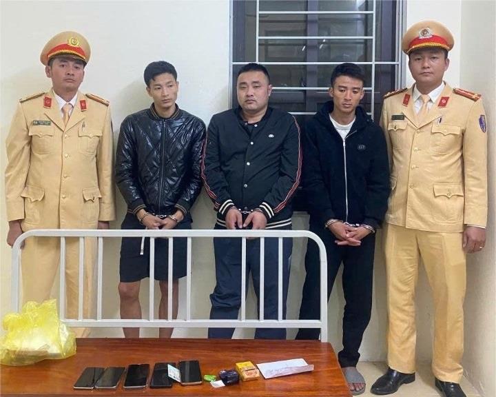 Ngay sau đó, tổ tuần tra CSGT đã ra hiệu lệnh dừng xe để kiểm tra. Tại thời điểm kiểm tra trên xe, ngoài tài xế, có 3 thanh niên, gồm: Trần Hồng Quân (1998, trú xã Nghĩa Khánh, tỉnh Nghệ An), Nguyễn Hữu Khởi (1992, trú xã Quỳ Châu, tỉnh Nghệ An) và Trần Huy Hoàng (2000, trú xã Nghĩa Khánh).