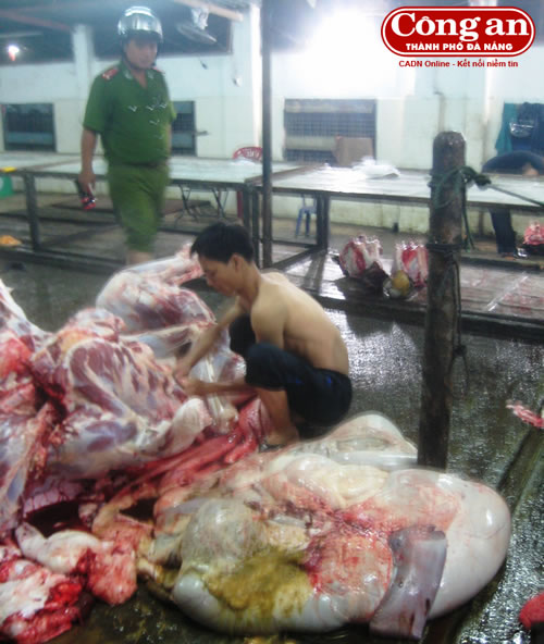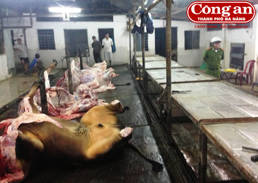 Chiều 3-12, trao đổi với P.V Báo CATP Đà Nẵng, Thượng tá Võ Quốc Dũng - Phó trưởng Phòng CSMT cho biết, qua thời gian bố trí TS nắm tình hình và sử dụng các biện pháp nghiệp vụ, Phòng CSMT đã quyết định đột nhập cơ sở giết mổ này. Không ngoài dự đoán, 0 giờ 15 ngày 1-12, khi lực lượng bất ngờ ập vào kiểm tra hành chính, rất nhiều nhân viên đang cố tình bơm nước vào 4 con bò để chuẩn bị mổ thịt mang bán cho tiểu thương trong buổi sáng cùng ngày. Trong số đó có con nằm ngất lịm, thoi thóp thở trên sàn lò mổ. Tiếp tục xác minh thực tế khi mổ bò, bên trong ruột, bao tử, hàng chục lít nước ồng ộc chảy ra.