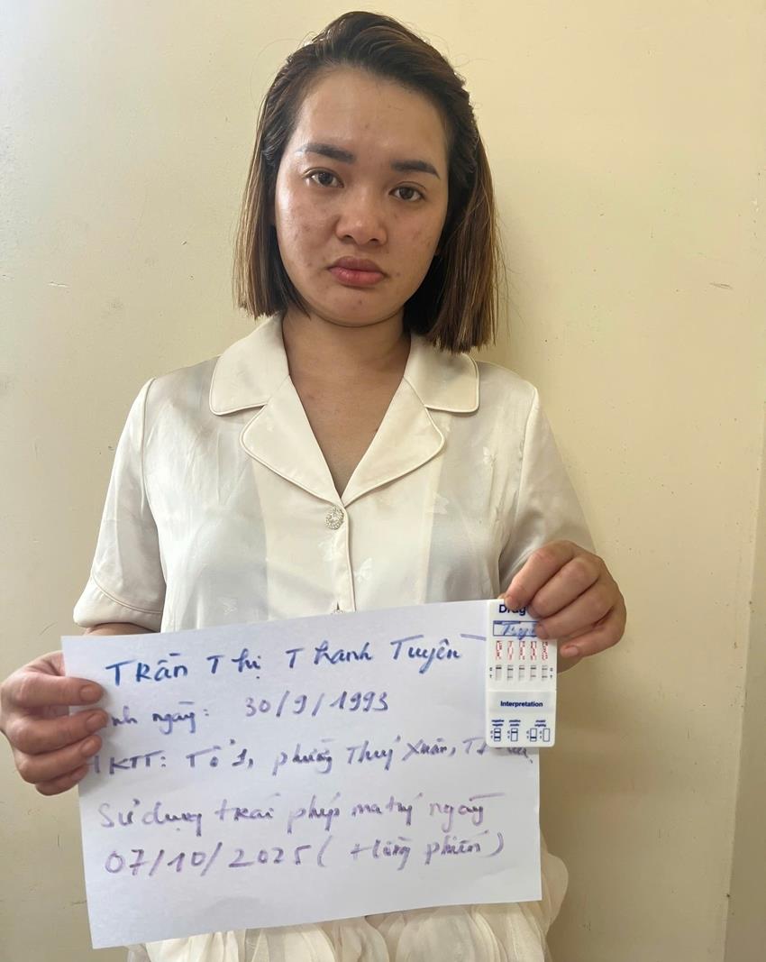 Công an phường Thủy Xuân (TP Huế) ngày 13-10 cho hay, vừa phối hợp Phòng Cảnh sát ĐTTP về ma túy- Công an TP Huế bắt quả tang đối tượng Trần Thị Thanh Tuyền (1993, trú phường Thủy Xuân) tàng trữ 98 viên nén nghi ma túy tổng hợp (hồng phiến).