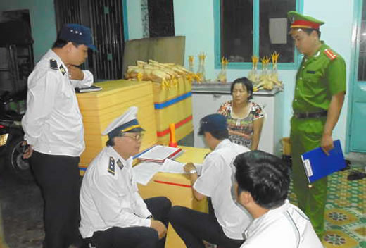| Cơ quan chức năng lập biên bản xử lý hành vi giết mổ gia cầm trái phép. |