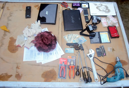 Sau khi bắt giữ, khám xét trong người Vũ, Cơ quan CSĐT CATP Đà Nẵng lập biên bản tạm giữ 1 khẩu súng, 1 ô-tô BKS 79D-9206 (theo khai nhận của Vũ là tài sản thuê) và nhiều tang vật liên quan đến hành vi trộm cắp như cờ lê, mỏ-lết, găng tay, tóc giả... Được biết, Vũ từng có 2 tiền án về tội trộm cắp tài sản, lần gần nhất là 19 năm tù.