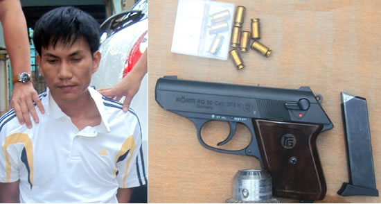 Nguyễn Tuấn Vũ và tang vật gây án. |