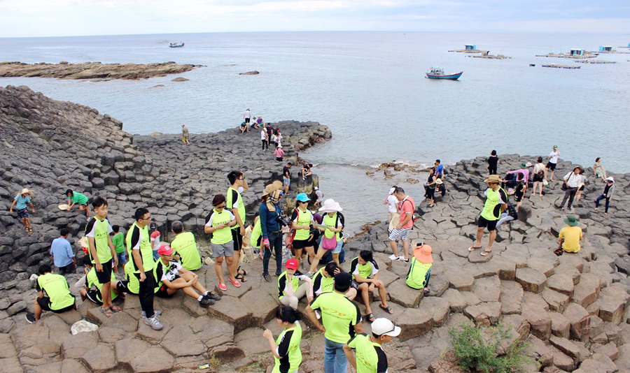 Du khách tham quan Gành Đá Đĩa Phú Yên. |