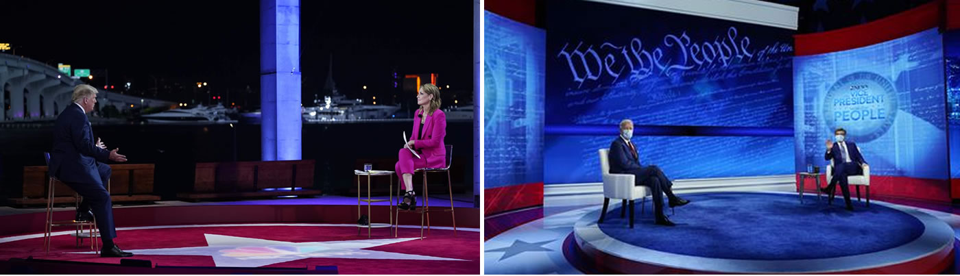 Ông Biden nói chuyện với cử tri Trung tâm Hiến pháp quốc gia thuộc thành phố Philadelphia và được truyền hình trực tiếp trên kênh ABC, còn ông Trump nói chuyện ở thành phố Miami và được truyền hình trực tiếp trên kênh NBC. Cuộc tranh luận trên truyền hình này được coi là thay thế cho cuộc tranh luận trực tiếp thứ hai diễn ra ngày 15-10 đã bị hủy bỏ sau khi ông Trump phản đối việc tiến hành trực tuyến cuộc tranh luận được Ủy ban Tranh luận Tổng thống quyết định.