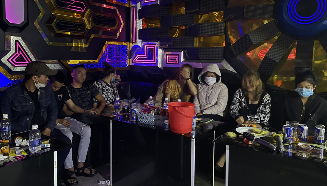 Các đối tượng tham gia “bay lắc” tại quán karaoke bị bắt quả tang. |