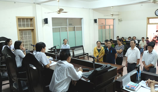 Các bị hại trong vụ án khai báo tại phiên tòa. |