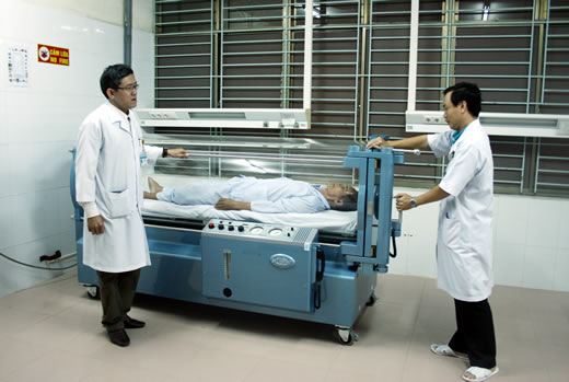 | Điều trị bằng máy oxy cao áp tại BV C Đà Nẵng. |