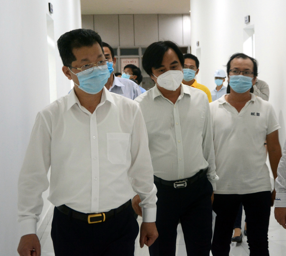 Phó Bí thư Thường trực Thành ủy Đà Nẵng Nguyễn Văn Quảng kiểm tra thực tế BV dã chiến chiều 11-8. |