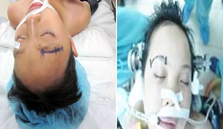 Một bệnh nhân vừa được các bác sĩ phẫu thuật mở sọ lỗ nhỏ. |