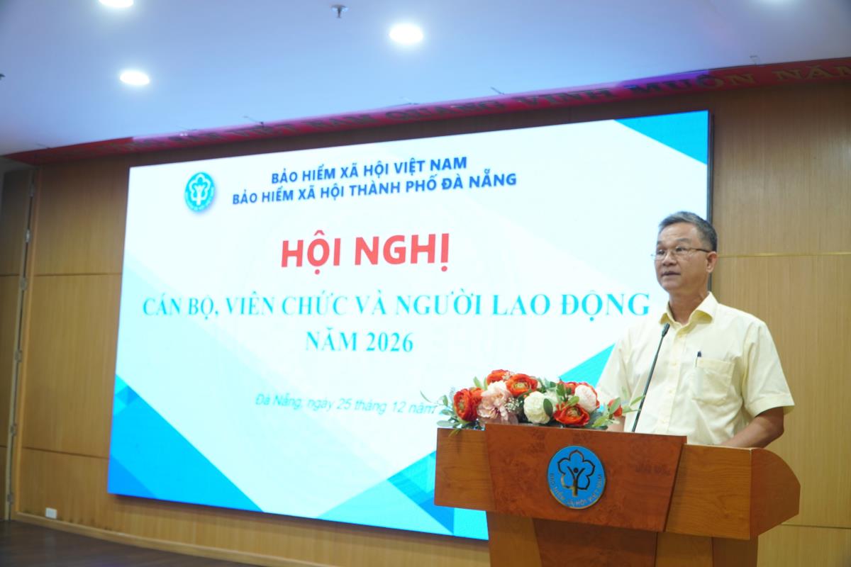 Ngày 25/12/2025, Bảo hiểm xã hội thành phố Đà Nẵng long trọng tổ chức Hội nghị tổng kết công tác năm 2025, triển khai nhiệm vụ năm 2026; đồng thời kết hợp Hội nghị cán bộ, viên chức, người lao động năm 2026. Hội nghị do ông Nguyễn Trí Đại – Giám đốc BHXH thành phố chủ trì, với sự tham dự của các Phó Giám đốc, lãnh đạo 8 phòng nghiệp vụ và 14 BHXH cơ sở.