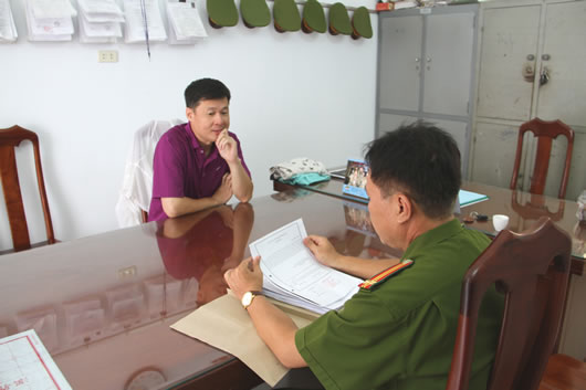 Trung tá Lê Thanh Chương ghi lời khai Yin Wensheng. |