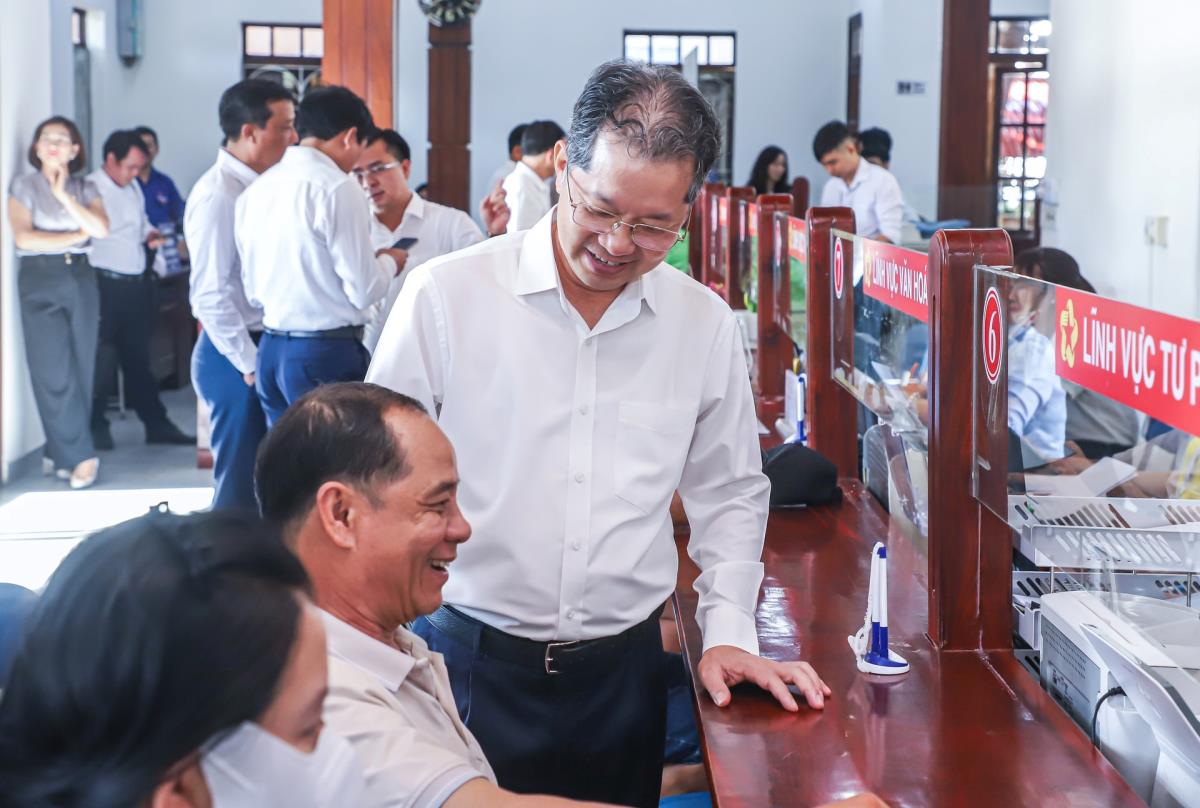 Bí thư Thành ủy Nguyễn Văn Quảng thăm hỏi công dân đến làm thủ tục hành chính, lắng nghe phản ánh về thuận lợi, khó khăn, vướng mắc trong quá trình thực hiện. Đa số người dân đều bày tỏ sự hài lòng với thái độ phục vụ nhiệt tình, chu đáo của đội ngũ cán bộ, công chức; các thủ tục được xử lý kịp thời và minh bạch. Bí thư Thành ủy nhấn mạnh, chính quyền địa phương hai cấp đi vào hoạt động chưa lâu, còn gặp nhiều khó khăn, thách thức, mong muốn người dân tiếp tục đồng hành, chia sẻ cùng chính quyền để hoàn thiện hơn nữa việc phục vụ nhân dân.