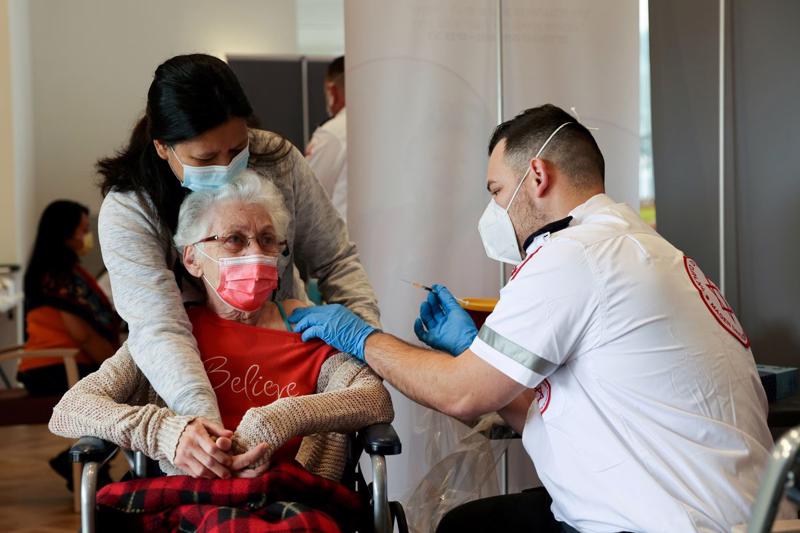 Tiêm vaccine COVID-19 trong một nhà dưỡng lão ở Israel. Ảnh: Reuters |