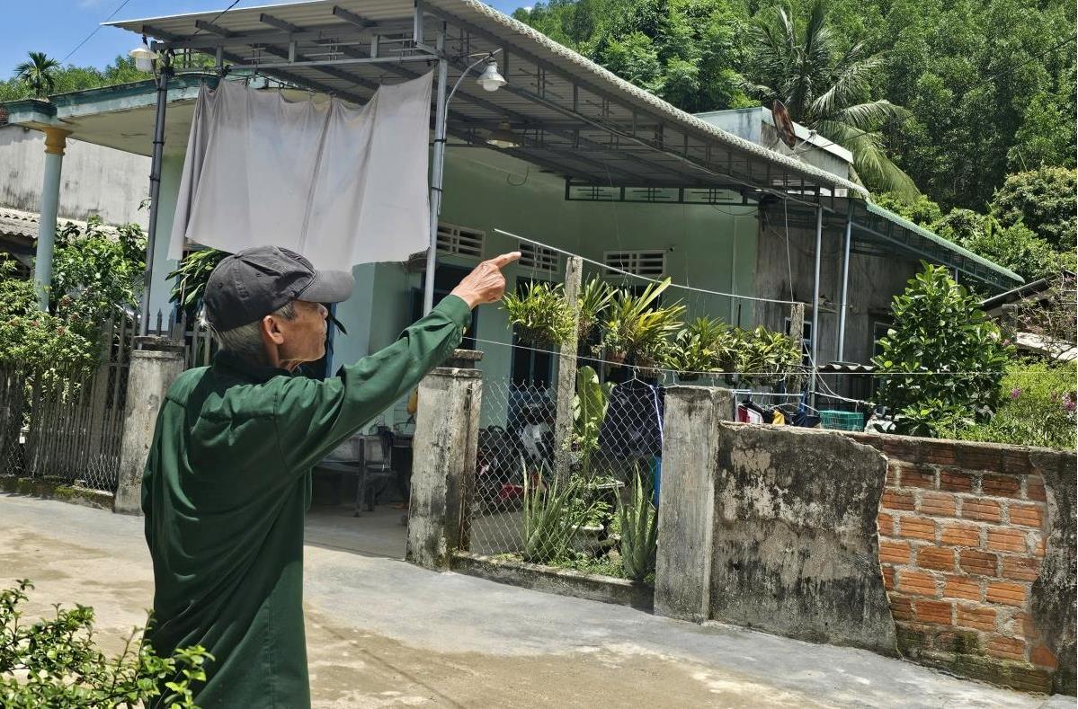 Căn nhà của gia đình ông Dương Thanh Tân rộng 80m2 ở dưới chân núi Đá, thôn Trà Cong, xã An Hòa, huyện An Lão. Ông Tân sống ở khu vực này 24 năm nay. Khoảng vài năm trở lại đây, khu vực này có tình trạng đá lăn từ trên núi xuống gây mất an toàn.