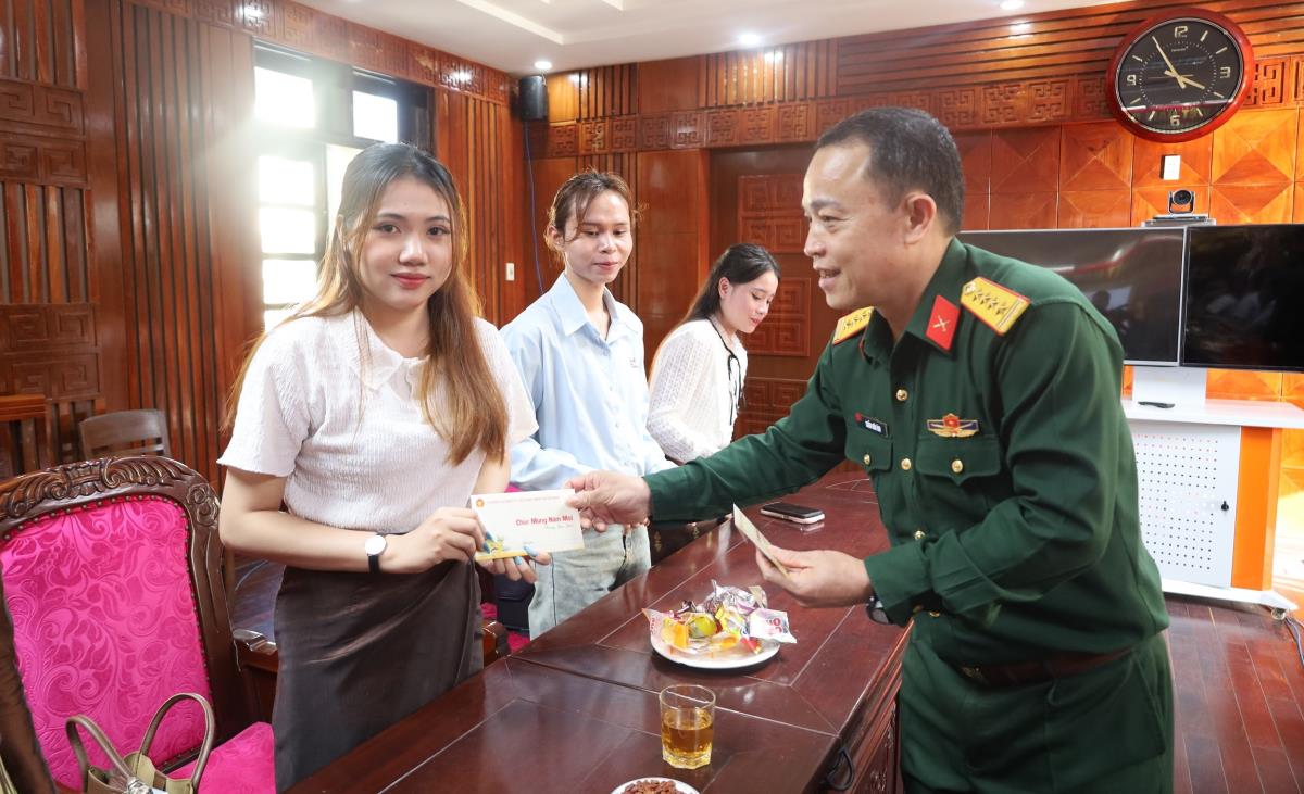 Nhân dịp chuẩn bị đón năm mới Tết Nguyên đán Bính Ngọ 2026, chiều 4-2, tại Ban Chỉ huy Phòng thủ Khu vực 4 - Bàn Thạch, Đại tá Trần Hữu Ích - Ủy viên Ban Thường vụ Thành ủy, Chỉ huy trưởng Bộ CHQS TP Đà Nẵng chủ trì buổi gặp mặt 27 em sinh viên là con cán bộ quân đội thuộc Sư đoàn 5 và Bộ Chỉ huy Quân sự 4 tỉnh Nam Lào đang học tập tại các trường Đại học, Cao đẳng trên địa bàn phía Nam thành phố.