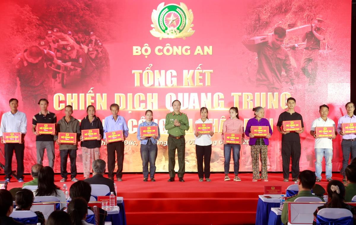 Dịp này, Bộ trưởng Bộ Công an tặng bằng khen cho 49 tập thể và 95 cá nhân có thành tích xuất sắc trong Chiến dịch Quang Trung. Bộ cũng đã trao tặng 12 suất quả cho các hộ gia đình có nhà bị sập ở thành phố Đà Nẵng và tỉnh Gia Lai sớm ổn định cuộc sống.