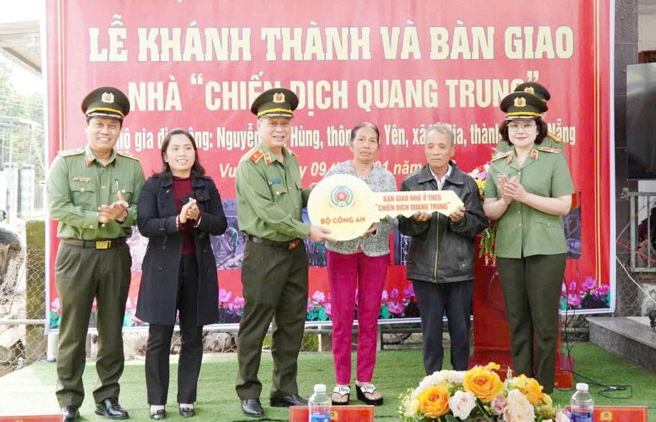 Theo báo cáo của Bộ Công an, thực hiện “Chiến dịch Quang Trung” do Thủ tướng Chính phủ phát động, Bộ đã huy động hơn 11 nghìn lượt cán bộ, chiến sĩ hỗ trợ nhân dân khắc phục hậu quả thiên tai, sửa chữa nhà ở. Lực lượng Công an nhân dân chủ động khởi công xây dựng lại 419 căn nhà cho nhân dân tại 9 tỉnh khu vực miền Trung (từ Hà Tĩnh đến Khánh Hòa, Lâm Đồng). Với quyết tâm chính trị cao, vì cuộc sống của nhân dân, lực lượng đã hoàn thành toàn bộ số nhà xây dựng mới trước ngày 10-1-2026, sớm hơn 20 ngày, vượt 30% mốc thời gian so với yêu cầu của Thủ tướng Chính phủ.