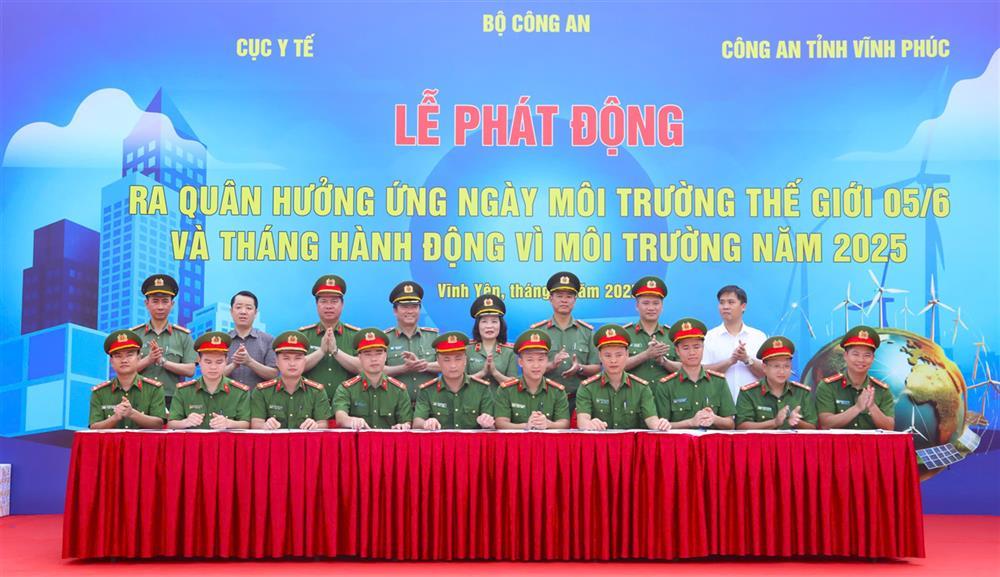 Thực hiện Kế hoạch tổ chức các hoạt động hưởng ứng các ngày lễ kỷ niệm về môi trường của Bộ Công an năm 2025, ngày 5-6, thừa ủy quyền của lãnh đạo Bộ Công an, Cục Y tế Bộ Công an phối hợp với Công an tỉnh Vĩnh Phúc tổ chức Lễ phát động hưởng ứng ngày môi trường Thế giới và Tháng hành động về môi trường năm 2025 trong CAND tại tỉnh Vĩnh Phúc. Thiếu tướng Phạm Thị Lan Anh- Cục trưởng Cục Y tế Bộ Công an; Đại tá Thân Văn Hải, Giám đốc Công an tỉnh Vĩnh Phúc đồng chủ trì Lễ phát động.