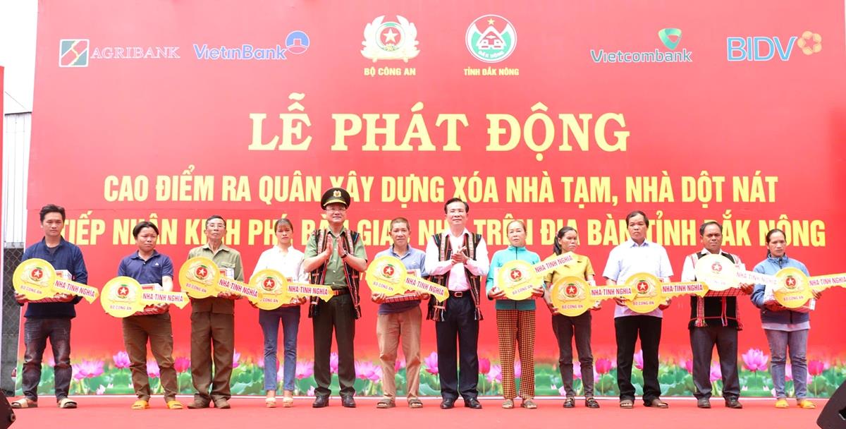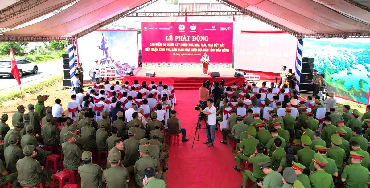 Sáng 12/5, tại bon Ting Wel Đơm, xã Đắk Nia, thành phố Gia Nghĩa, Bộ Công an phối hợp với tỉnh Đắk Nông tổ chức Lễ phát động cao điểm ra quân xây dựng xoá nhà tạm, nhà dột nát, tiếp nhận kinh phí, bàn giao nhà mẫu trên địa bàn tỉnh Đắk Nông.