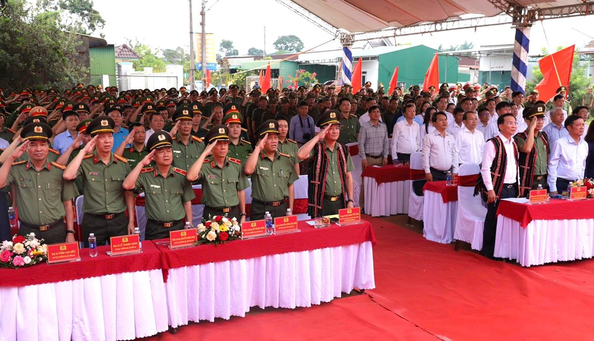 Dự và chủ trì buổi lễ có Trung tướng Phạm Thế Tùng, Uỷ viên Ban Thường vụ Đảng uỷ Công an Trung ương, Thứ trưởng Bộ Công an. Cùng dự có đại diện lãnh đạo một số Cục nghiệp vụ Bộ Công an; đại diện các nhà tài trợ. Về tỉnh Đắk Nông có đồng chí Hồ Văn Mười, Phó Bí thư Tỉnh ủy, Chủ tịch UBND tỉnh, Phó trưởng Ban Chỉ đạo xoá nhà tạm, nhà dột nát tỉnh cùng các đồng chí trong Ban Thường vụ Tỉnh uỷ, lãnh đạo UBND tỉnh; Đại tá Hồ Song Ân, Giám đốc Công an tỉnh Đắk Nông; lãnh đạo các sở, ban, ngành, địa phương; các đồng chí Phó giám đốc Công an tỉnh; lãnh đạo các đơn vị nghiệp vụ, trưởng Công an cấp xã cùng đông đảo bà con Nhân dân trên địa bàn.