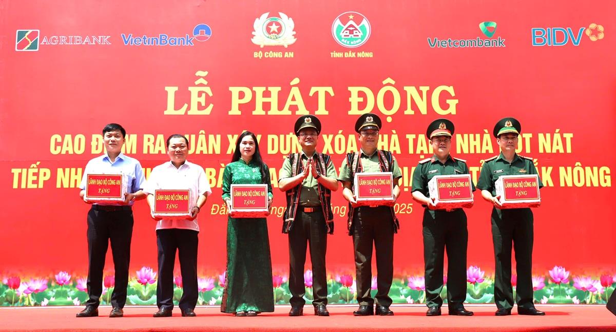 “Đặc biệt, đối với tỉnh Đắk Nông, Bộ Công an đã đồng hành, phối hợp rất khẩn trương, kêu gọi các nhà tài trợ đóng góp, ủng hộ để cùng tỉnh thực hiện phong trào thi đua “Chung tay xoá nhà tạm, nhà dột nát trên địa bàn cả nước trong năm 2025”. Qua đó, Bộ Công an phối hợp cùng các nhà tài trợ trân trọng chuyển kinh phí 30 tỷ đồng để xây dựng mới 500 căn nhà cho bà con Nhân dân tỉnh Đắk Nông, góp phần hỗ trợ hoàn thành mục tiêu hỗ trợ xóa nhà tạm, nhà dột nát tại tỉnh vào tháng 6/2025”, Thứ trưởng Phạm Thế Tùng chia sẻ.